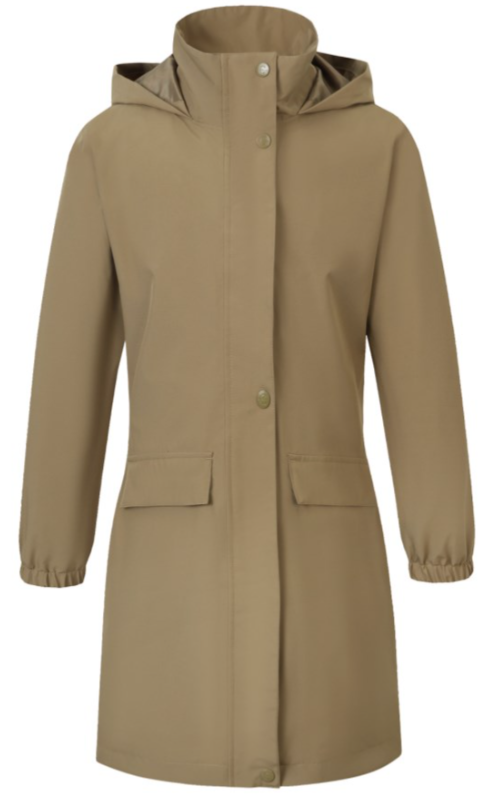 O impermeável da Covalliero oferece proteção fiável em todos os climas e vem com um capuz guardável.