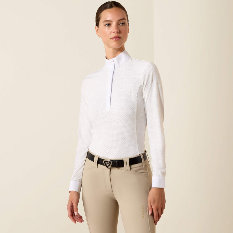 Quando a competição aquece, a Camisa Breathe Show brilha. Confeccionada em tecido luxuosamente macio com belas micro-perfurações para uma incrível respirabilidade, este elegante estilo de competição é indispensável para cavaleiros de todas as disciplinas.