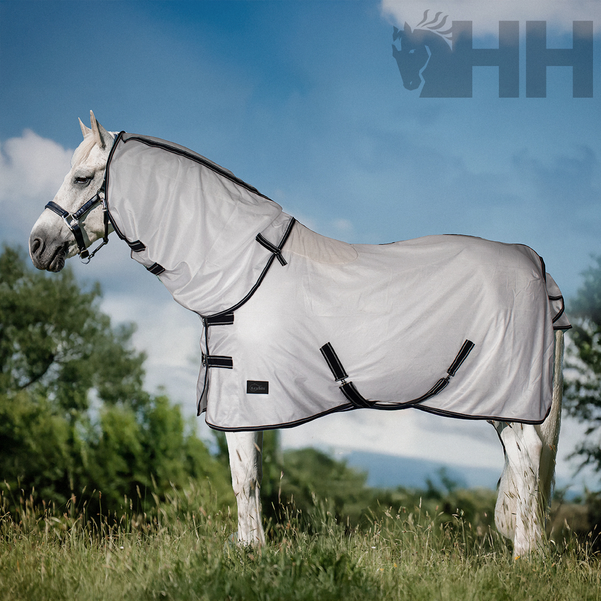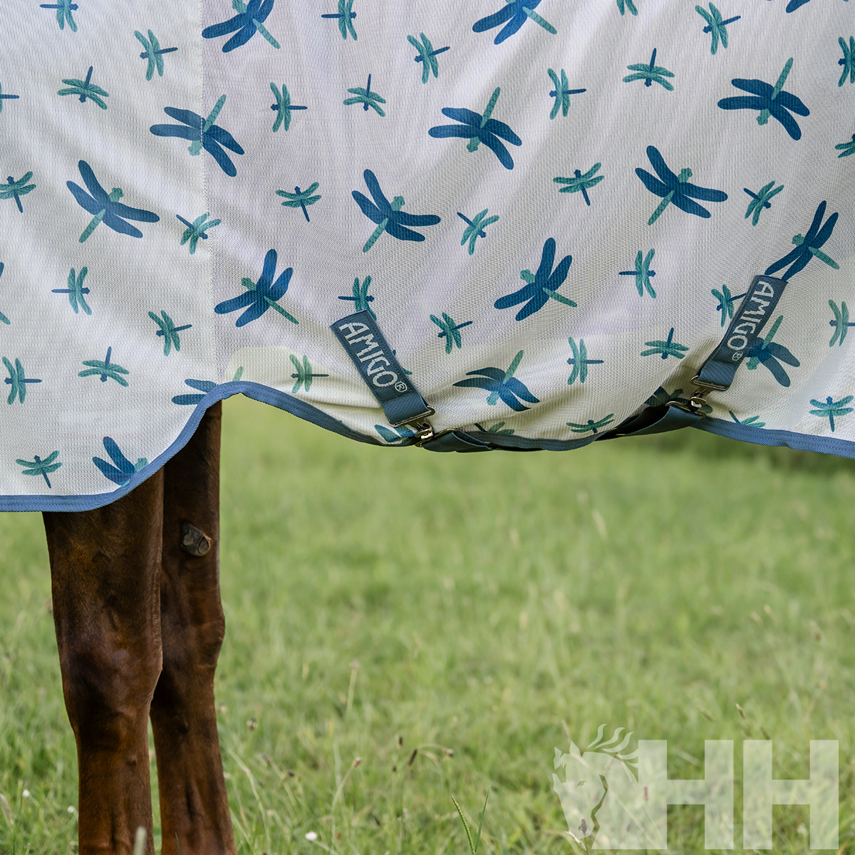 Manta feita em poliéster ultra respirável para proteger o cavalo de todo o tipo de insetos. Inclui capuz para o pescoço e o sistema patenteado de design em arco para a posição das mãos do cavalo, permitindo que se mova com total liberdade. Cores brilhantes com propriedades que refletem o sol, além de uma divertida opção de estampado de libélulas.